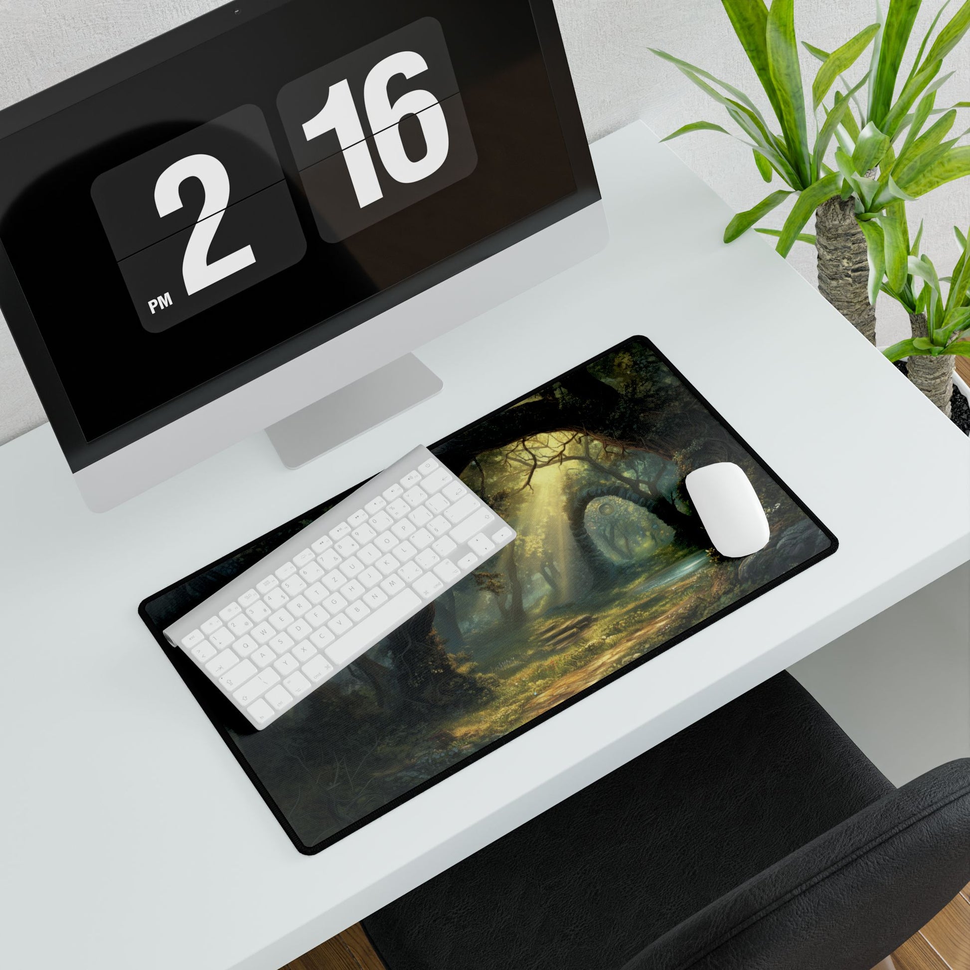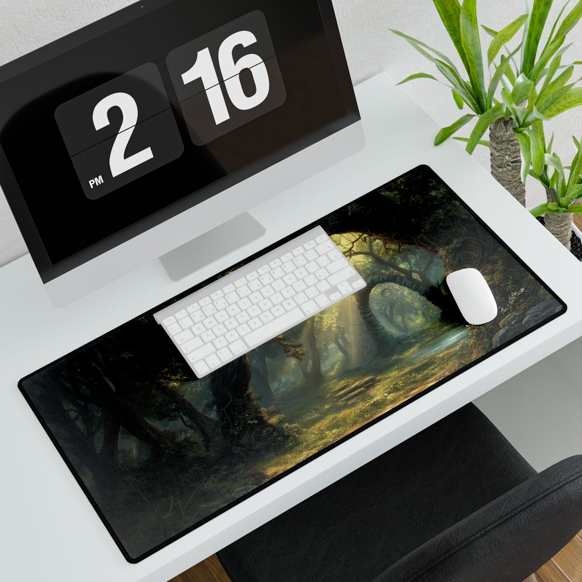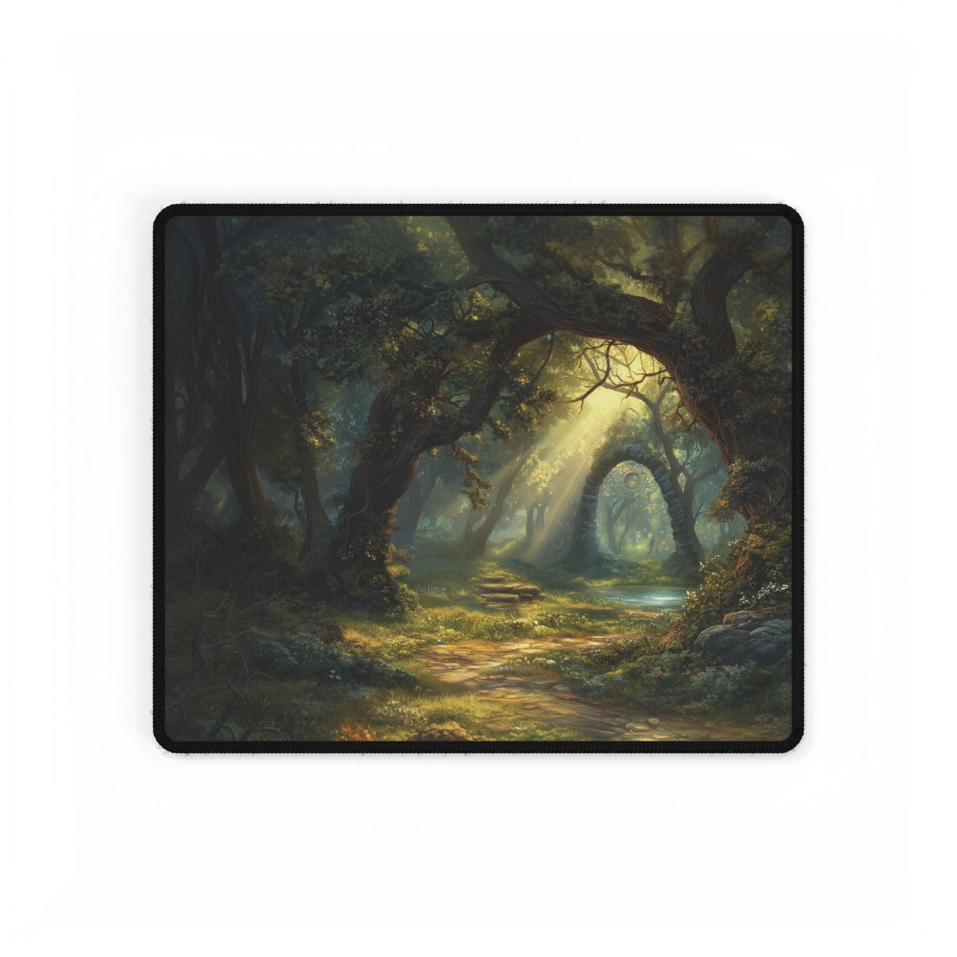 Immerse yourself in a magical fantasy forest with this vibrant and durable desk mat. Perfect for gamers, digital artists, and nature lovers. Ideal for adding a touch of whimsy to your workspace or as a thoughtful gift for someone who enjoys fantasy themes. Relevant for birthdays, holidays, and everyday desk use.