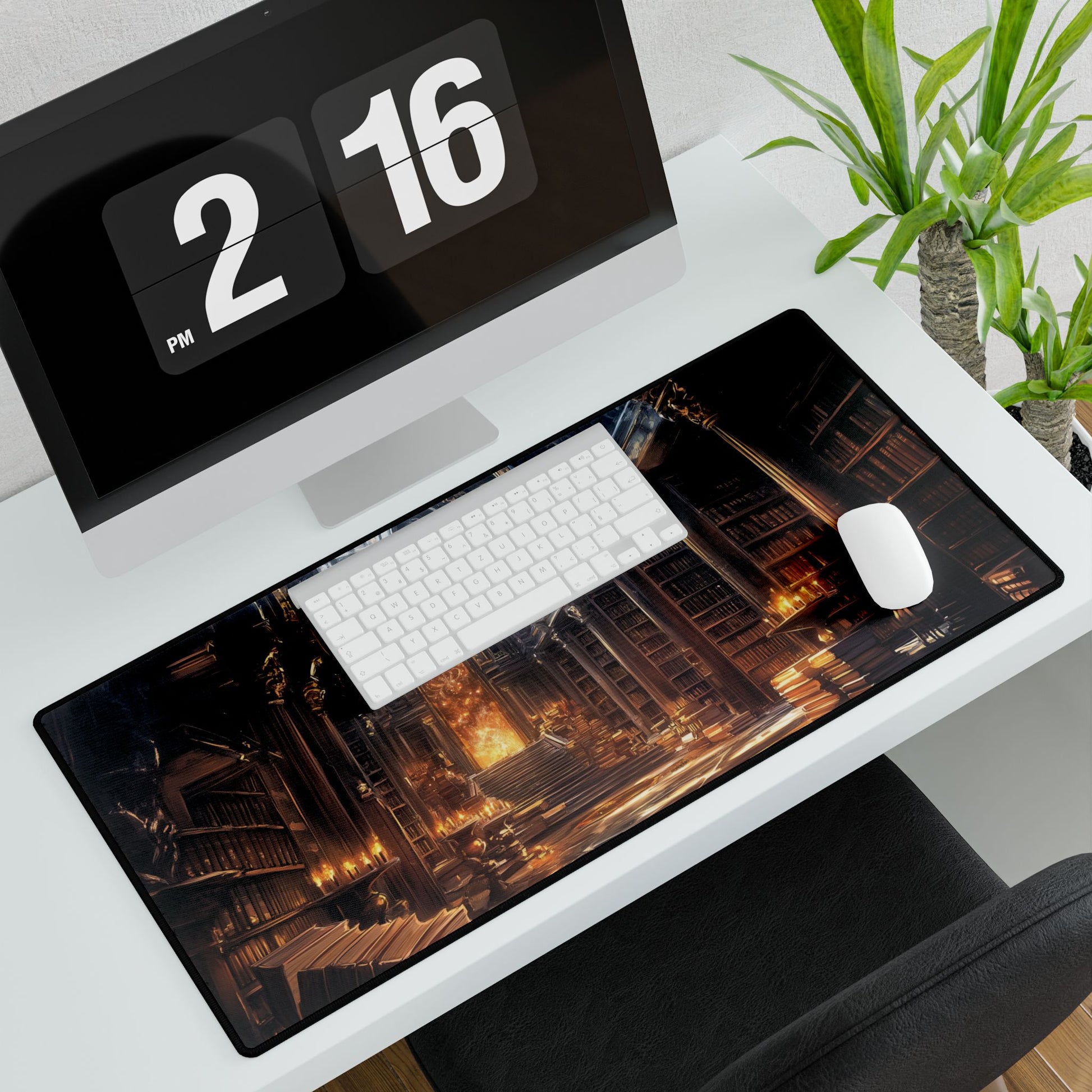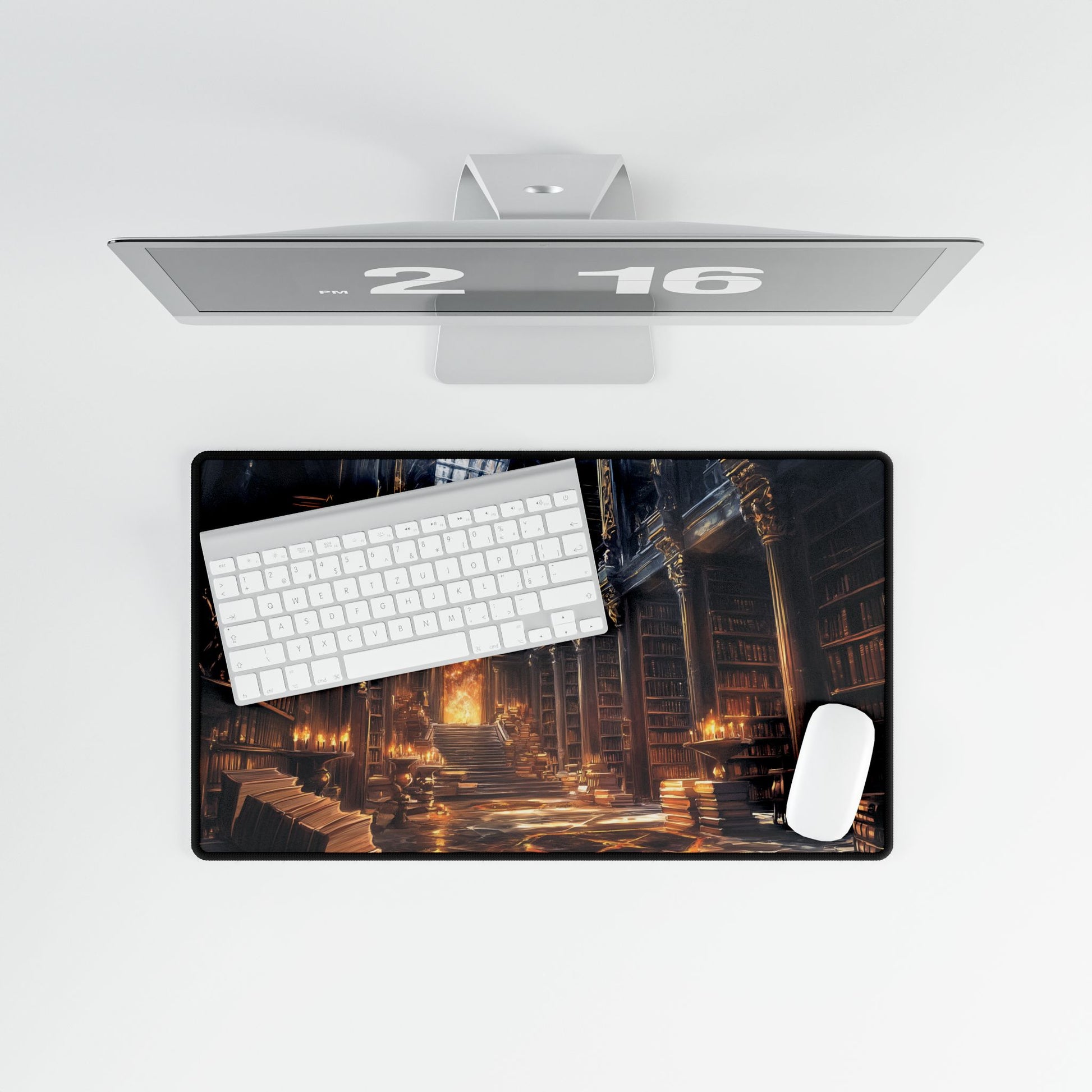 Immerse yourself in a magical library with this vibrant and durable desk mat. Perfect for book lovers and avid readers, this mouse pad adds a touch of whimsy and charm to your desk. Ideal for those who enjoy a cozy and enchanting atmosphere while working or browsing online. Relevant for bookworms, librarians, and anyone celebrating World Book Day or National Library Week.